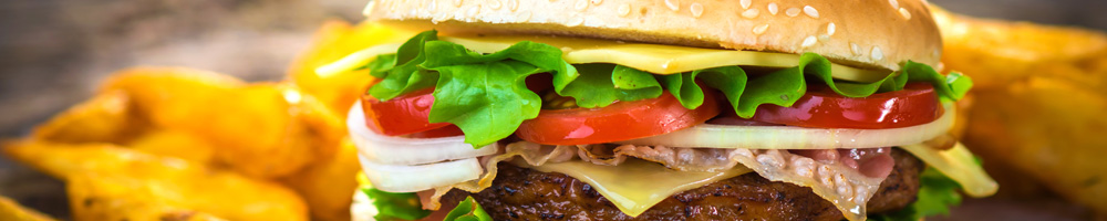 200g hausgemachte Frikadelle im Brot mit Eisbergsalat, Tomaten, Gurken und Ajvar